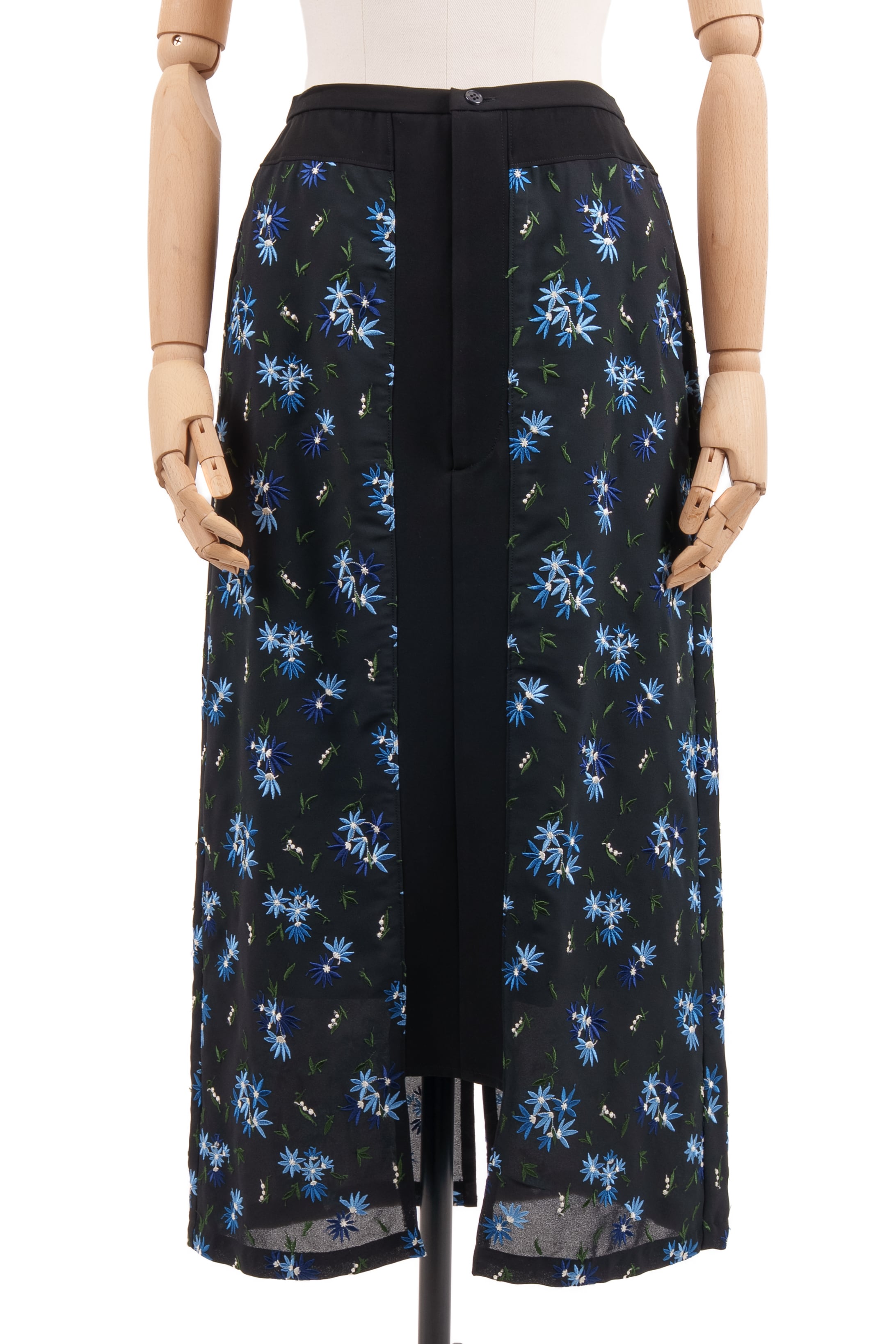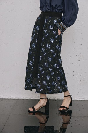 Style:1734-30105 Composition: 刺繍部分(基布) / ポリエステル100% 刺繍部分(刺繍糸) / レーヨン100% 別布 / ポリエステル100% 裏地 / キュプラ100% Size Guide size2 ウエスト 66-74cm 着丈 85cm 裾幅 52cm ヒップ 98cm