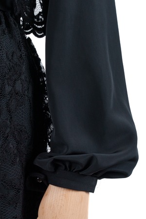 Style:1734-50104 Composition: 表地 / ナイロン75% レーヨン25% 別布 / ポリエステル100% Size Guide size1 バスト 90cm ウエスト 74-88cm 肩幅 36cm 袖丈 58cm 着丈 124cm size2 バスト 92cm ウエスト 76-90cm 肩幅 37cm 袖丈 60cm 着丈 129cm