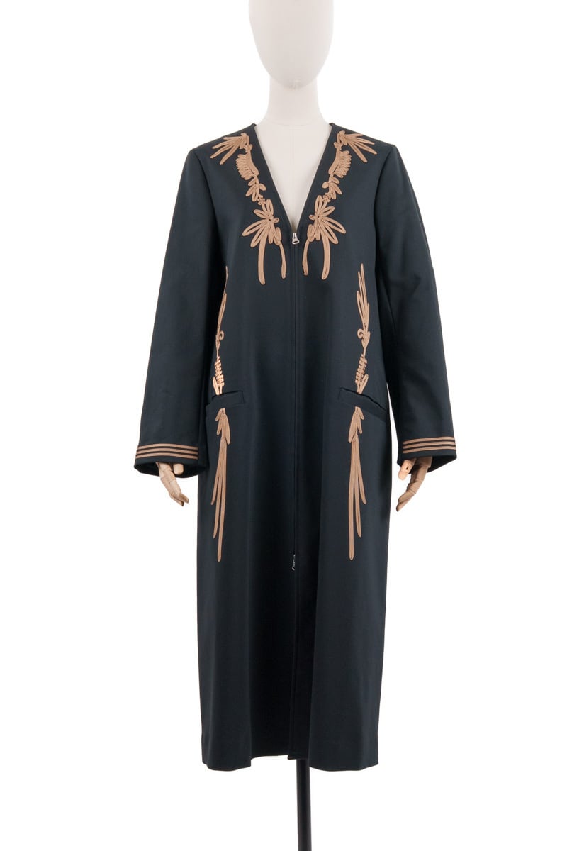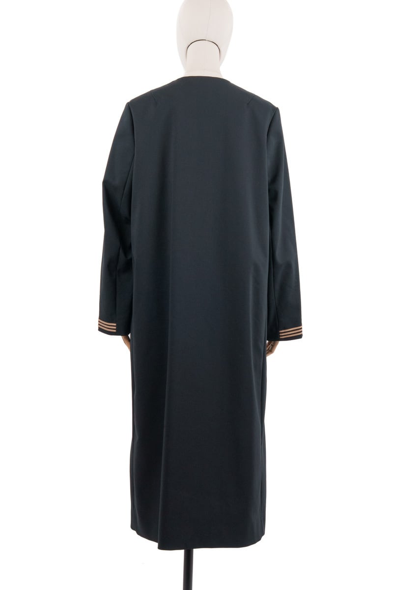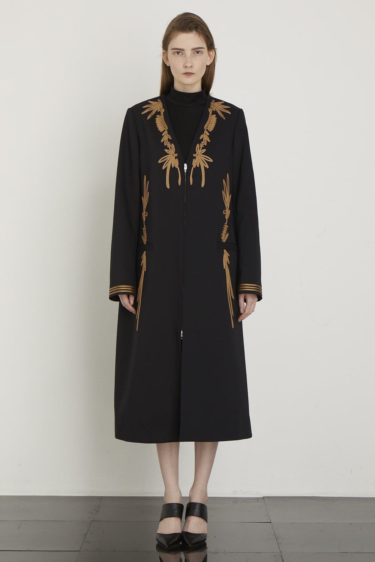Style:DL5-CO4 Composition: 表地 / コットン55% ポリエステル41% ポリウレタン4% 裏地 / キュプラ100% Size Guide size1 身幅 51cm 肩幅 39cm 袖丈 61cm 着丈 115cm size2 身幅 53cm 肩幅 41cm 袖丈 61cm 着丈 117cm