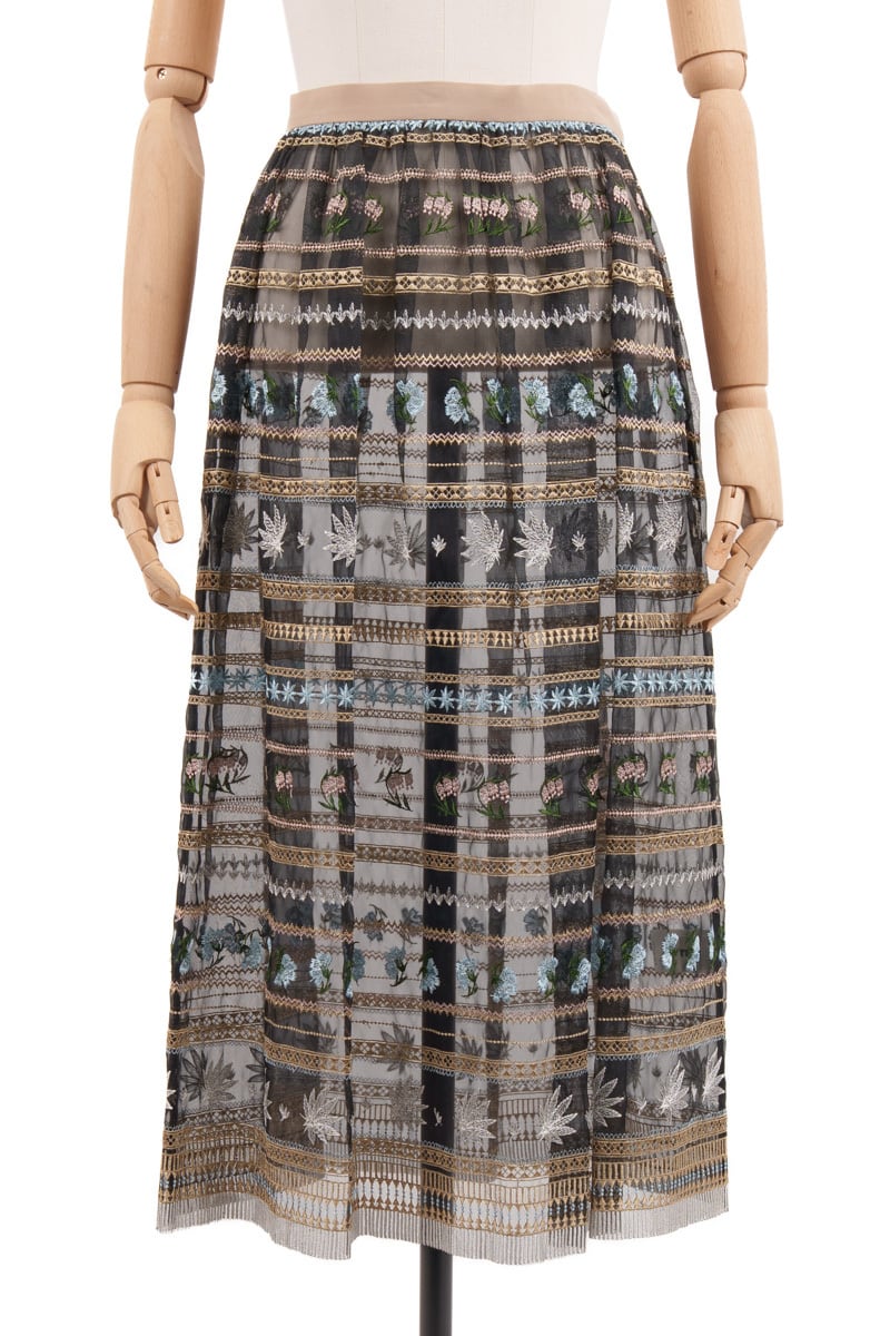 Style:LKF328-SK5 *インナー付き Composition: 本体(基布) / ポリエステル100% 刺繍部分 / レーヨン100% 別布 / トリアセテート72% ポリエステル28% インナー / ポリエステル100% Size Guide size1 ウエスト 63cm 着丈 82cm