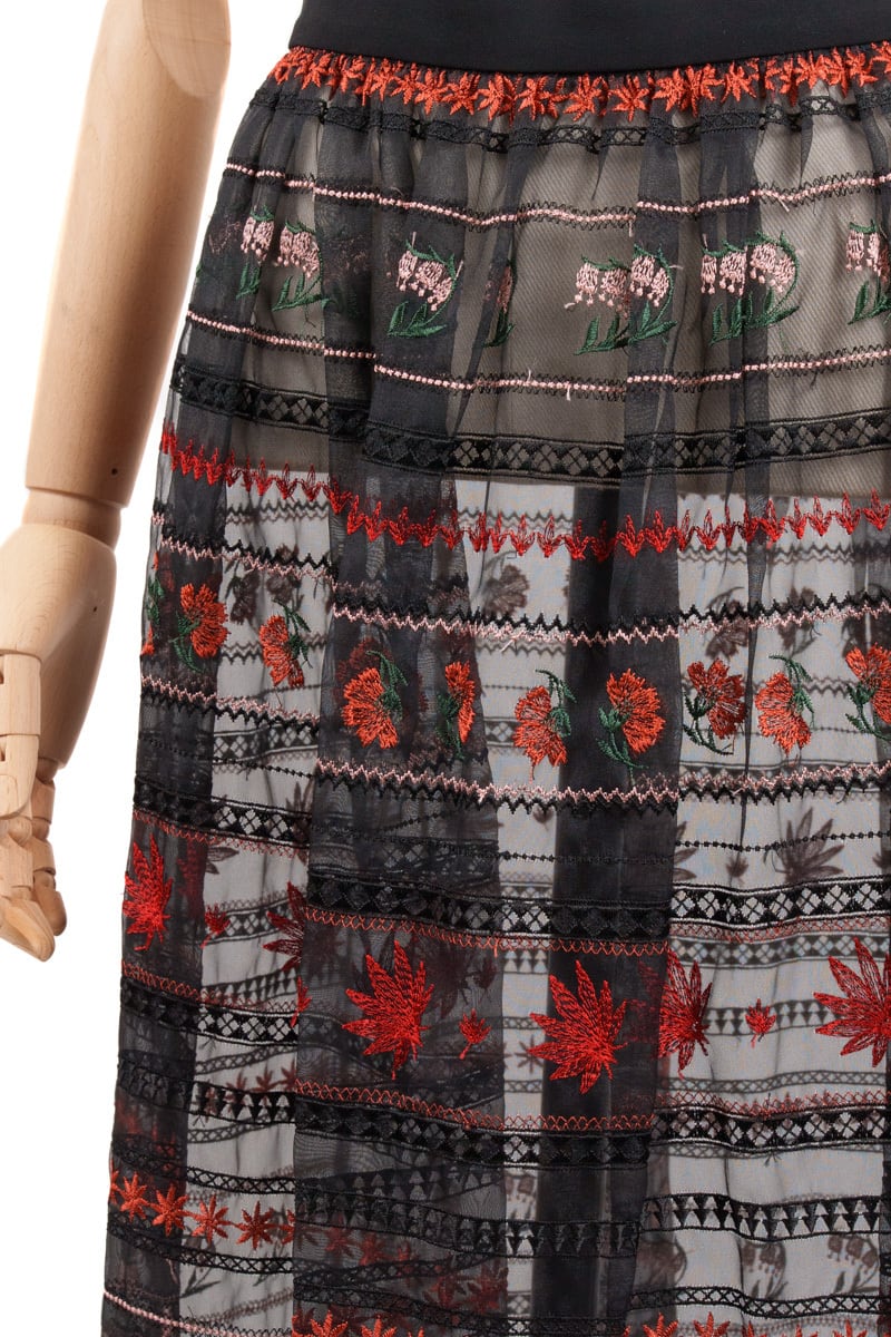 Style:LKF328-SK5 *インナー付き Composition: 本体(基布) / ポリエステル100% 刺繍部分 / レーヨン100% 別布 / トリアセテート72% ポリエステル28% インナー / ポリエステル100% Size Guide size1 ウエスト 63cm 着丈 82cm size2 ウエスト 66cm 着丈 83cm
