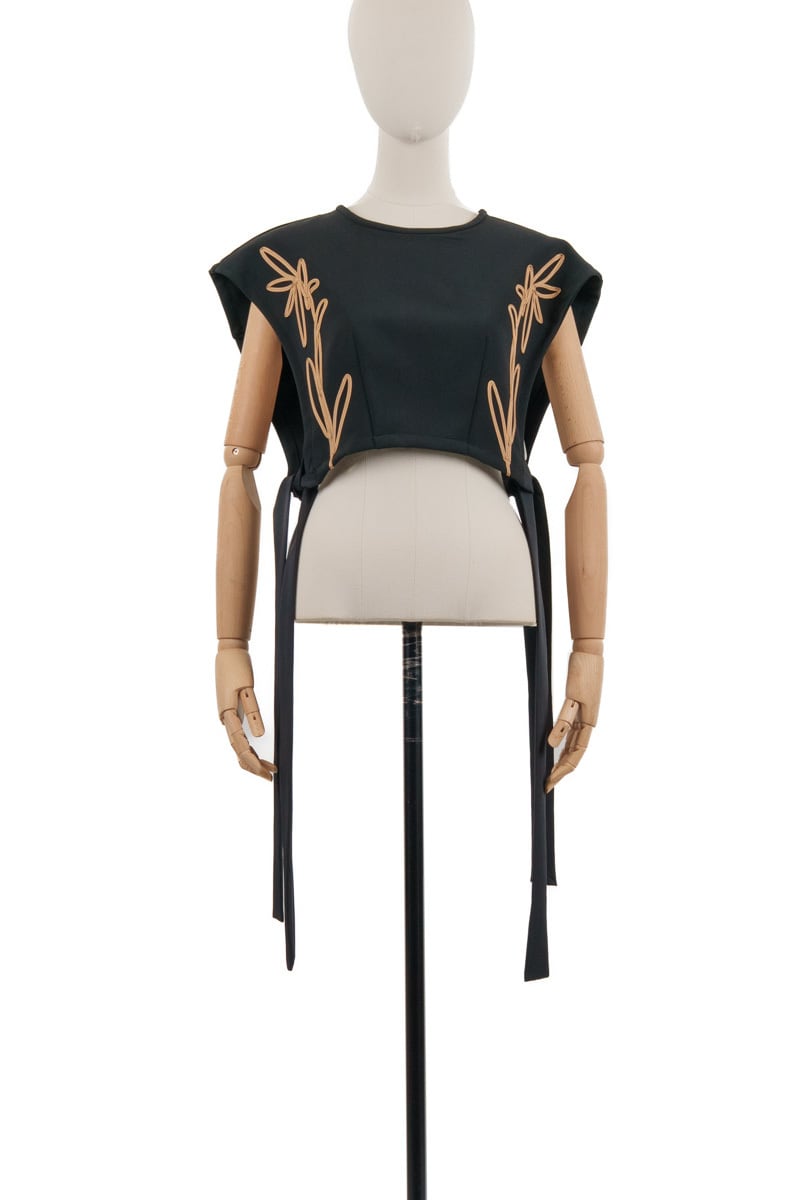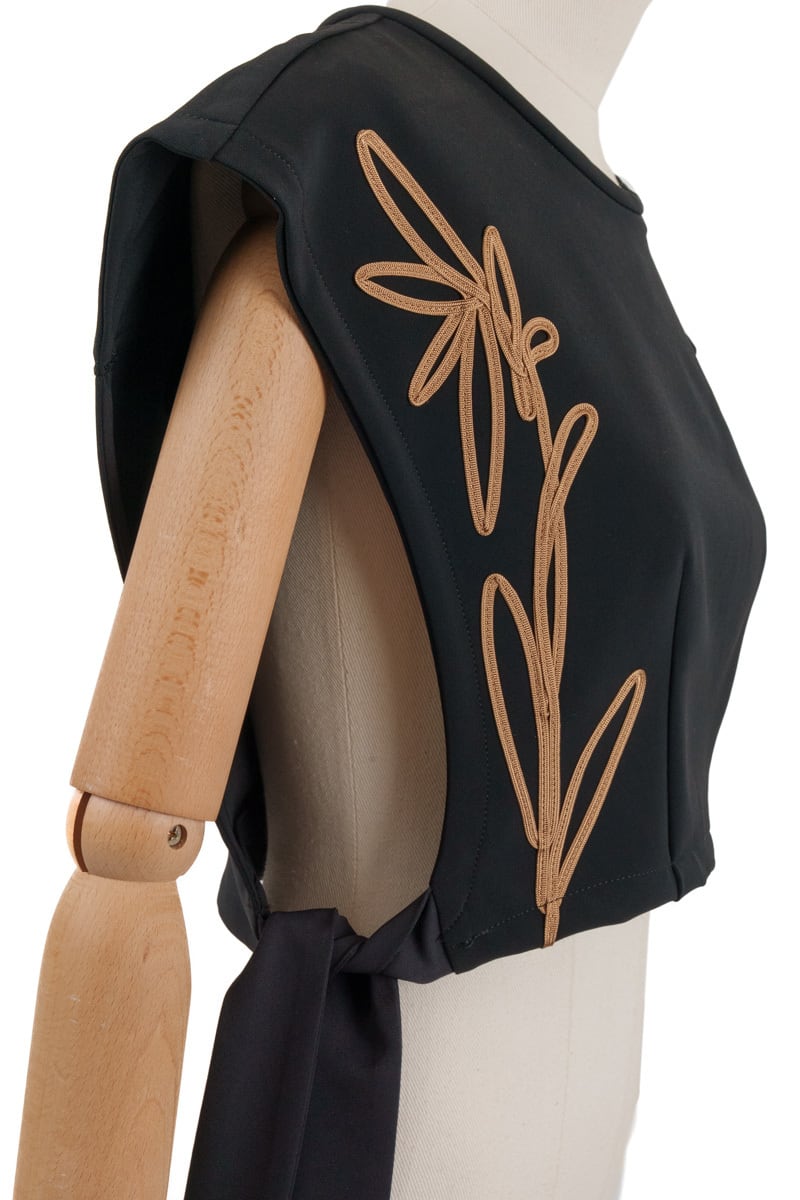 Style:1712-40101 Composition: 本体 / ポリエステル89% ポリウレタン11% 別布 / ポリエステル96% ポリウレタン4% 刺繍部分(刺繍糸) / レーヨン100% Size Guide size1 肩幅 51cm 着丈 36cm size2 肩幅 52cm 着丈 37cm