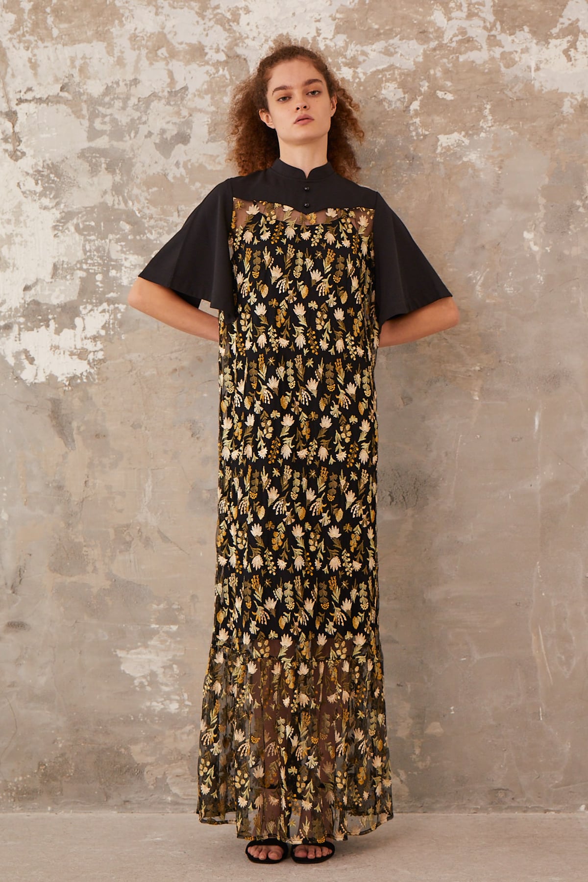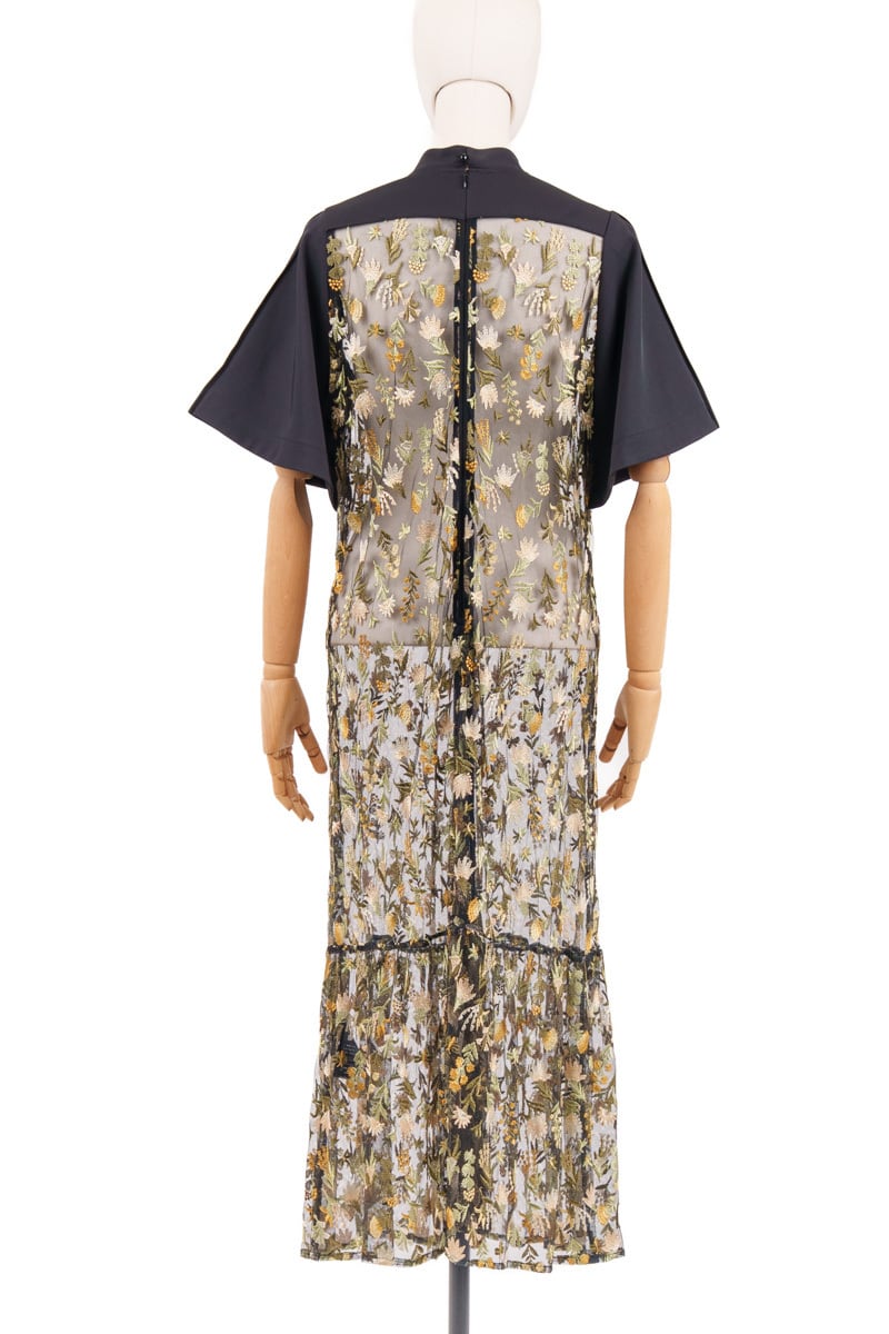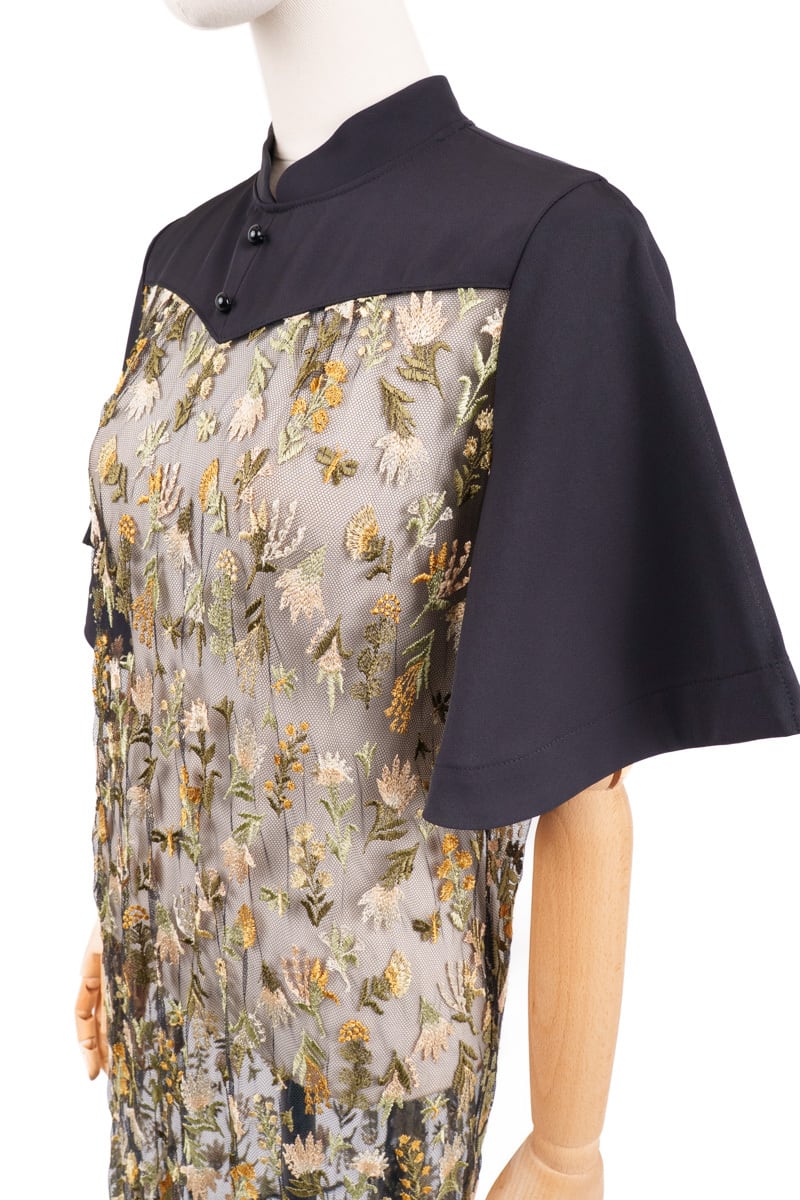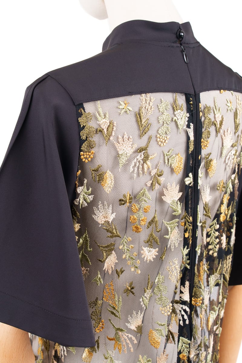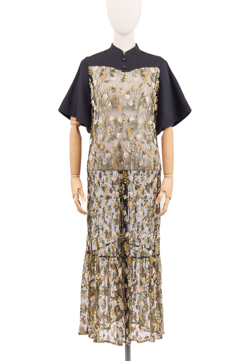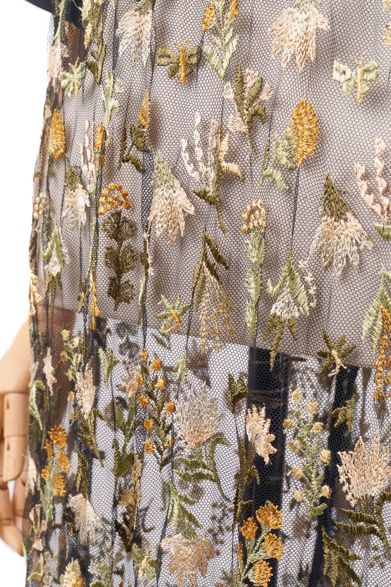 Style:1712-50106 *インナー付き Composition: 刺繍部分(基布) / ナイロン100% 刺繍部分(刺繍糸) / レーヨン50% ポリエステル50% 別布 / ポリエステル96% ポリウレタン4% 裏地 / ポリエステル100% インナー / ポリエステル100% Size Guide size1 バスト 98cm ウエスト 100cm 肩幅 35cm 袖丈 27cm 着丈 117cm 裾幅 98cm ヒップ 104cm