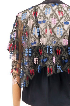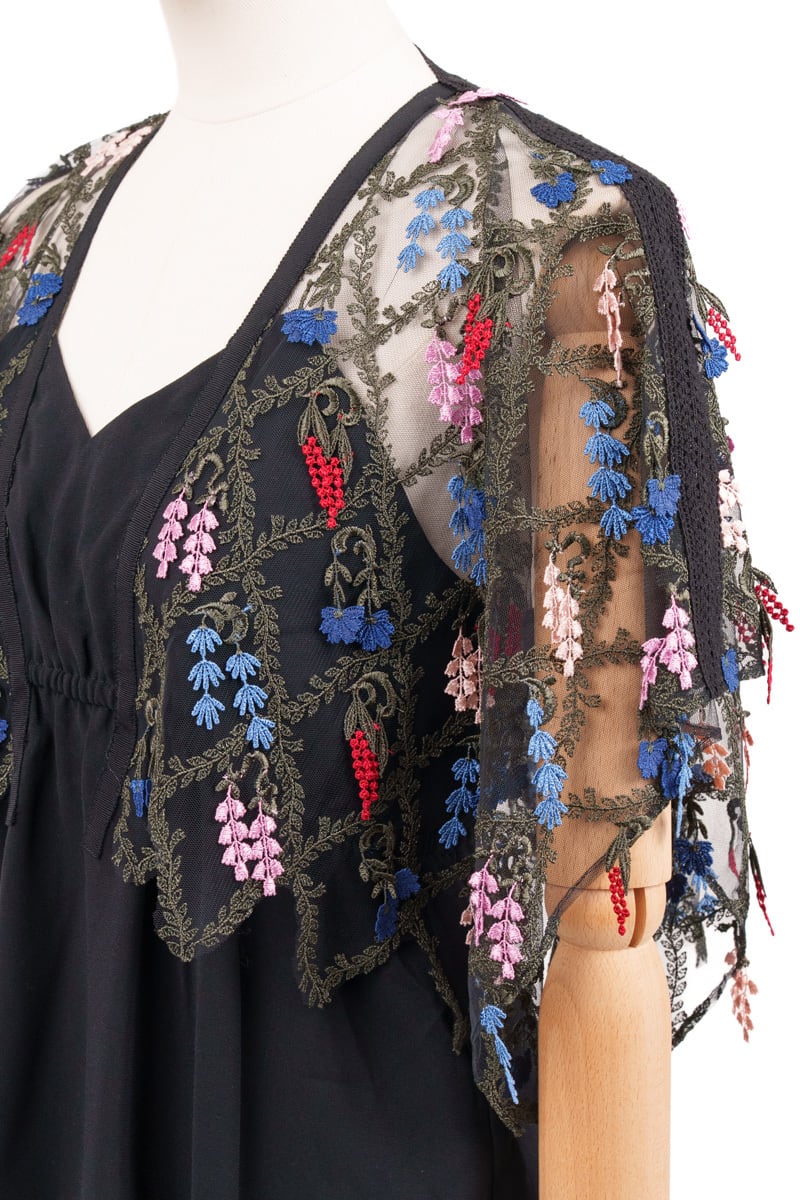 Style:LKF248-T1 *インナー付き Composition: 本体(基布) / ポリエステル100% 刺繍部分 / ポリエステル100% 別布 / ポリエステル100% Size Guide size2 バスト 78cm ウエスト 60-92cm 着丈 58cm 裄丈 41cm