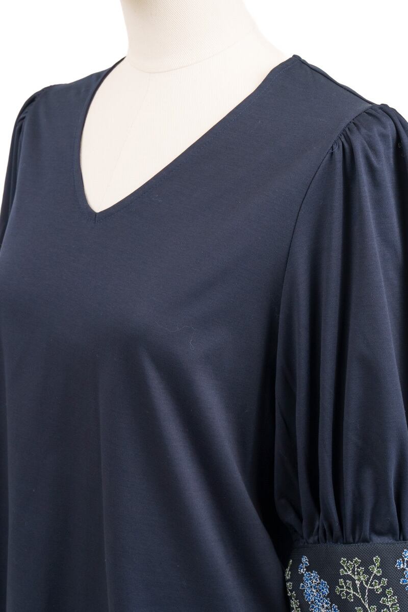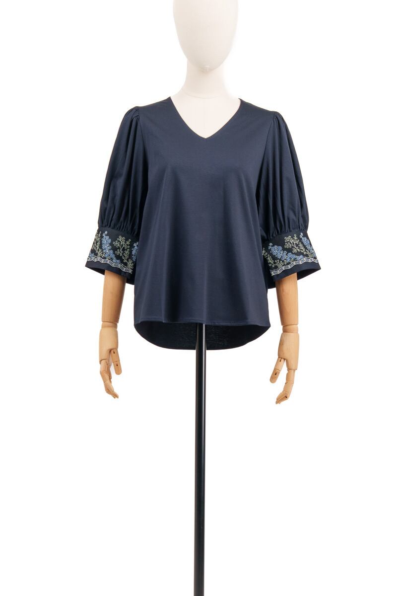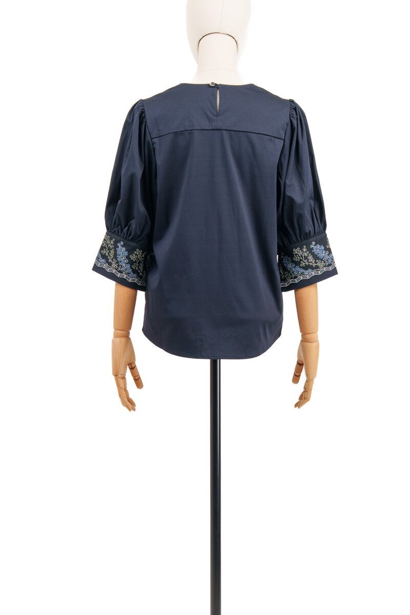 Style:1712-80108 Composition: 本体(基布) / 綿100% 刺繍部分(基布) / ポリエステル100% 刺繍部分(刺繍糸) / レーヨン100% Size Guide size1 バスト 96cm 肩幅 34cm 袖丈 41cm 着丈 60cm