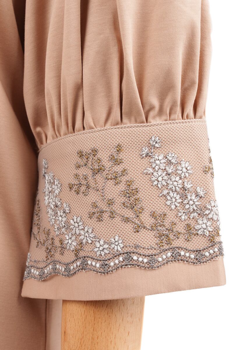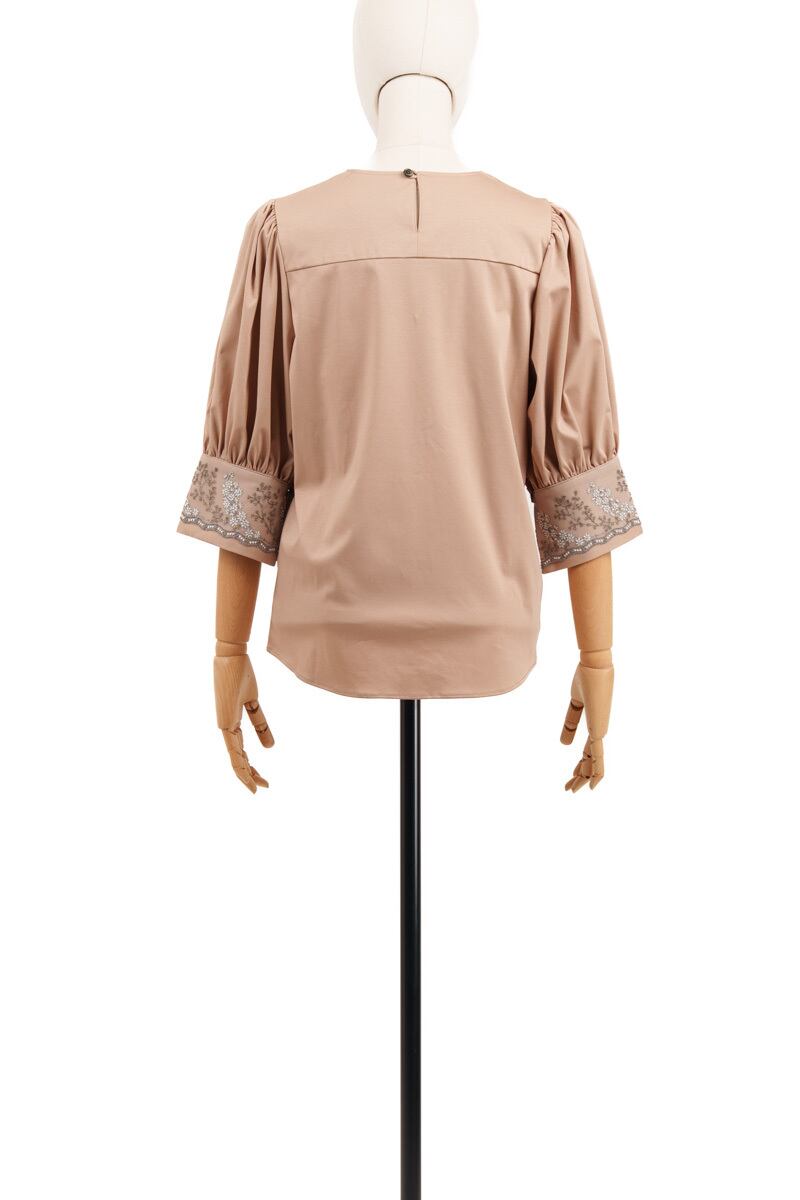 EMB.CUFF V NECK T SHIRT / BGE