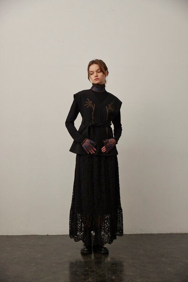 Style:1634-70102 Composition: 表地 / ポリエステル89% ポリウレタン11% 刺繍部分 / レーヨン100% 裏地 / キュプラ100% Size Guide size1 バスト 80.5cm ウエスト 78.5cm 肩幅 51cm 着丈 64cm size2 バスト 83.5cm ウエスト 81.5cm 肩幅 52cm 着丈 65cm